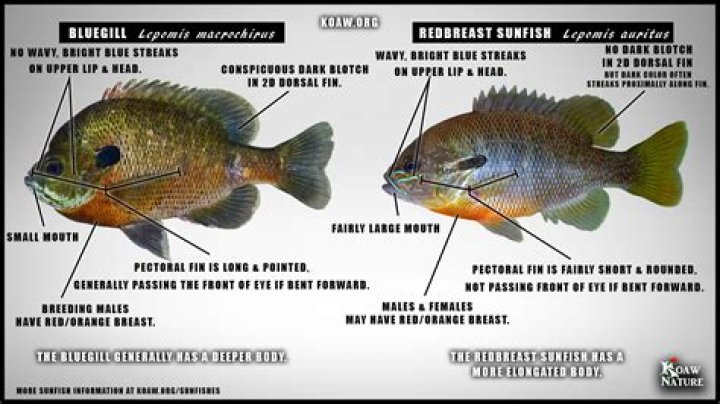 Additionally, how do you identify a bluegill? Description: Bluegills may be distinguished from other sunfish by the dark spot at the base of the dorsal fin and the solid black gill flap. They also have 6-8 vertical bars on their sides, and a relatively small mouth. The spiny dorsal fin usually has 10 spines and is broadly connected to the soft dorsal.
