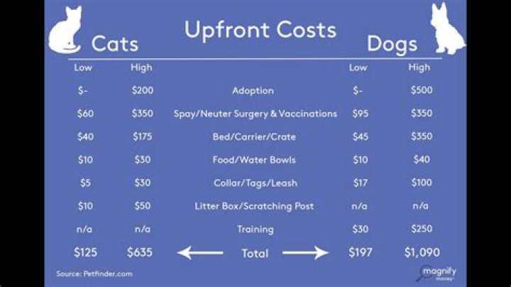 Cats are cheaper than dogs. They also tend to require more toys, supplies, and services than cats, including crates, leashes, collars, and training classes. Routine veterinary expenses tend to be higher for dogs than for cats.What is the monthly cost of owning a cat?