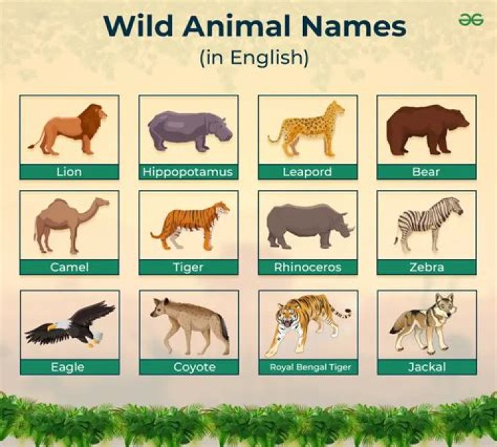 - Animals: lion, tiger, bear, dog, cat, alligator, cricket, bird, wolf.