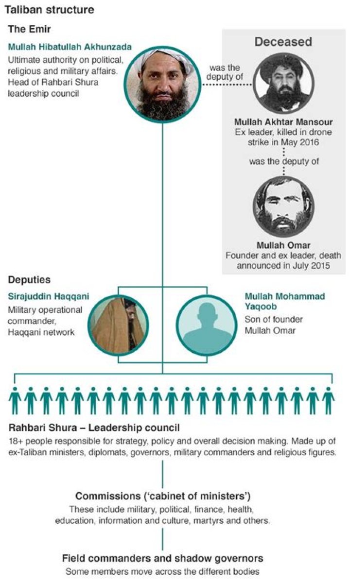 Since 2016, the Taliban's leader is Mawlawi Hibatullah Akhundzada. From 1996 to 2001, the Taliban held power over roughly three quarters of Afghanistan, and enforced there a strict interpretation of Sharia, or Islamic law.What does Al Qaeda stand for?