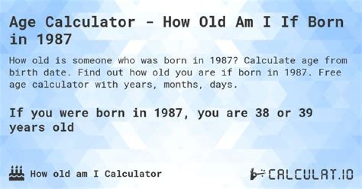 - If you were born in 1987, you are 33 years old. If your date of birth is after February 18, then your age is 32 years old.