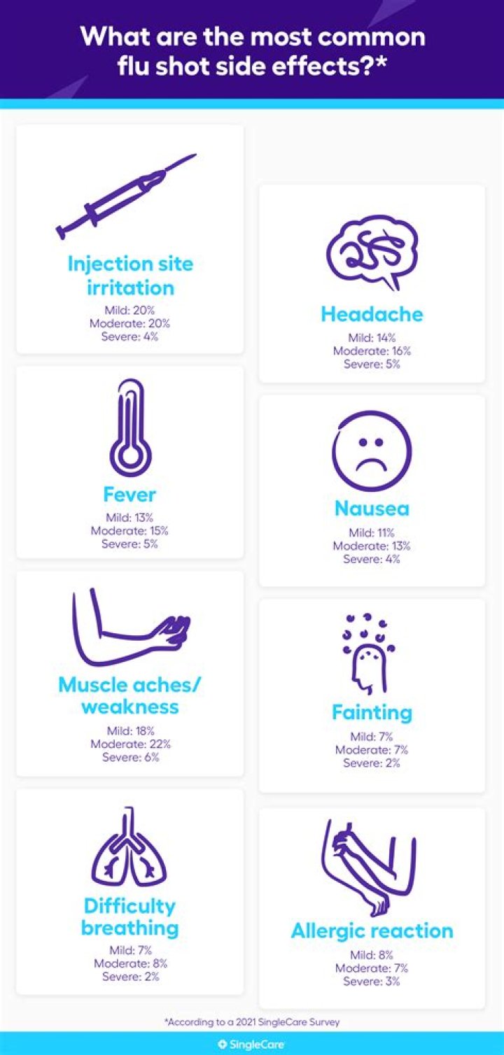 “More of a low grade fever, maybe some body aches, occasionally a little bit of a cough and a runny nose,” said Lance Watson, MD, Mercy Hospital. Also, headache, fatigue and soreness are common side effects that can last up to three days. Rarely, people with certain allergies can go into anaphylaxis after the flu shot.Which vaccines hurt the most?