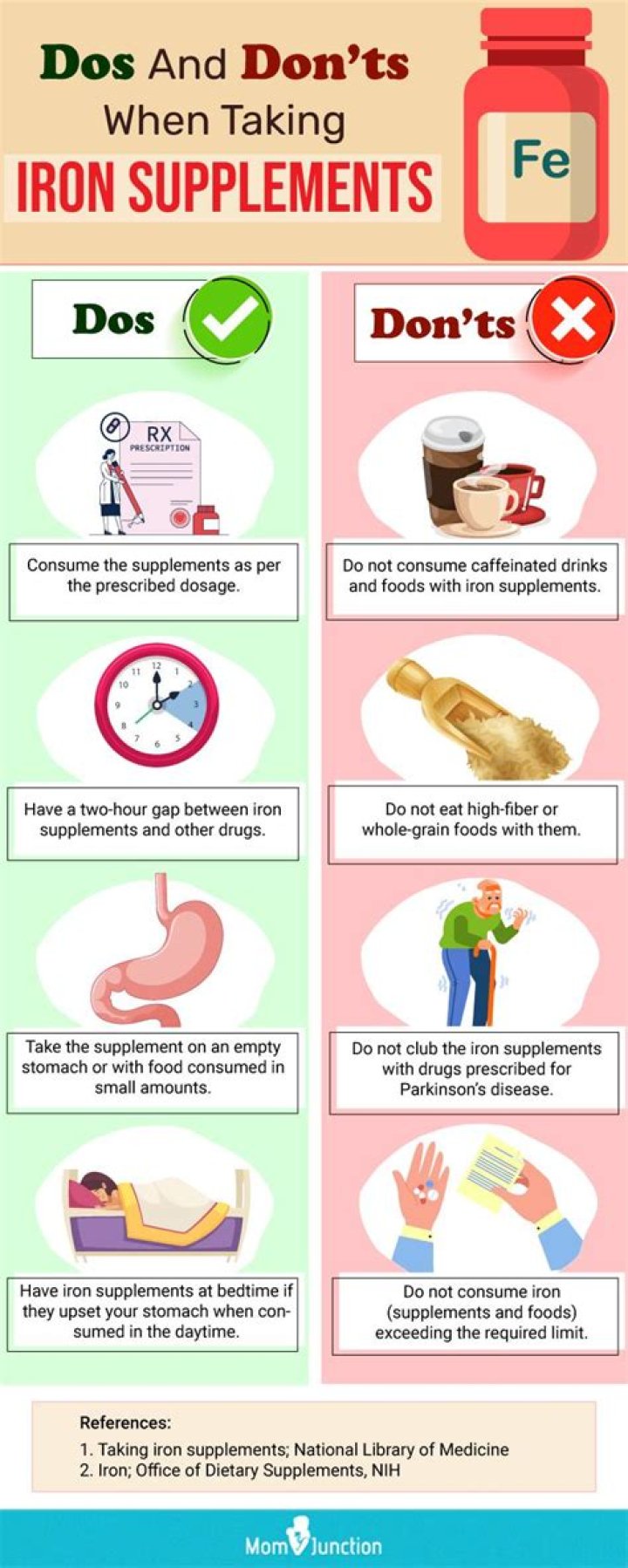 Additionally, what is the proper way to take iron pills? In most cases, the best time to take iron supplements is about one hour before or two hours after meals. Iron supplements are best taken with water on an empty stomach. There is a long list of foods, such as coffee, tea or milk, which interfere with the absorption of ferrous iron.