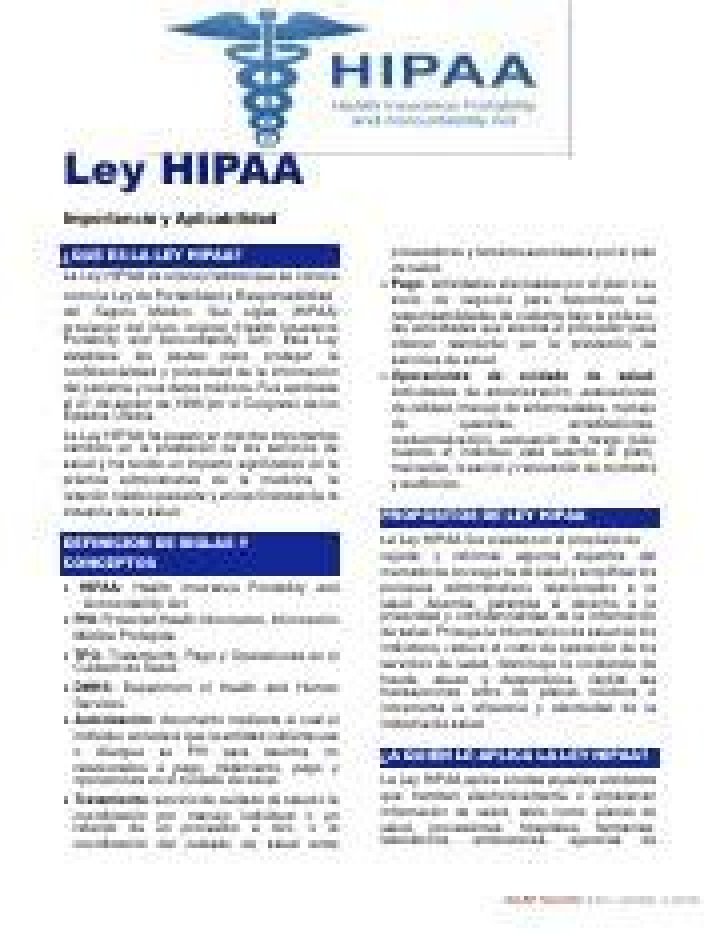 Sus siglas (HIPAA) provienen del título original, que es "Health Insurance Portability and Accountbaility Act". Esta ley establece las pautas para proteger la confidencialidad y privacidad de la información del paciente y sus datos médicos.