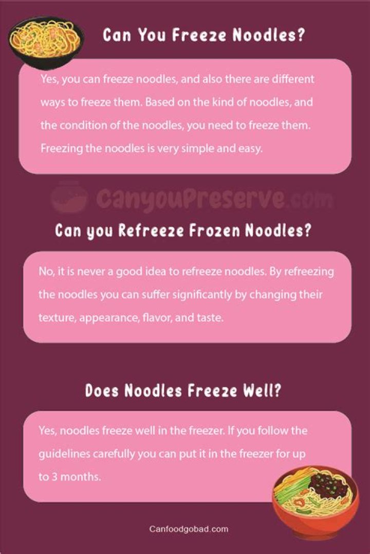 To further extend the shelf life of cooked egg noodles, freeze them; freeze in covered airtight containers or heavy-duty freezer bags. Cooked egg noodle dishes containing sauce freeze best; cooked dry egg noodles may become overly mushy when thawed.Can you freeze fresh yakisoba noodles?