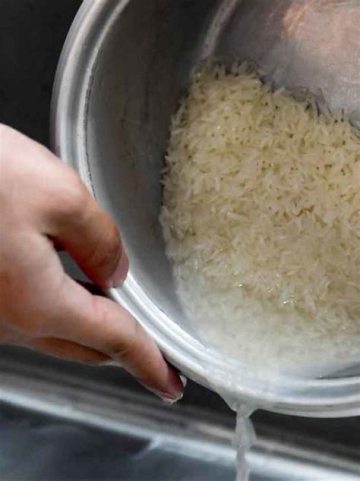 Likewise, how do you strain water from rice? Put your uncooked rice in a large bowl, fill itwith cold water, and use your hands to agitate therice in the water. You will notice that thewater is cloudy; that's all the starch! Strain therice through a fine mesh sieve and repeat the process threemore times, until the water runs clean.