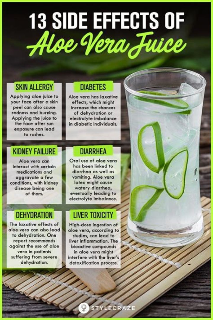 Subsequently, one may also ask, what are the side effects of drinking aloe vera juice?