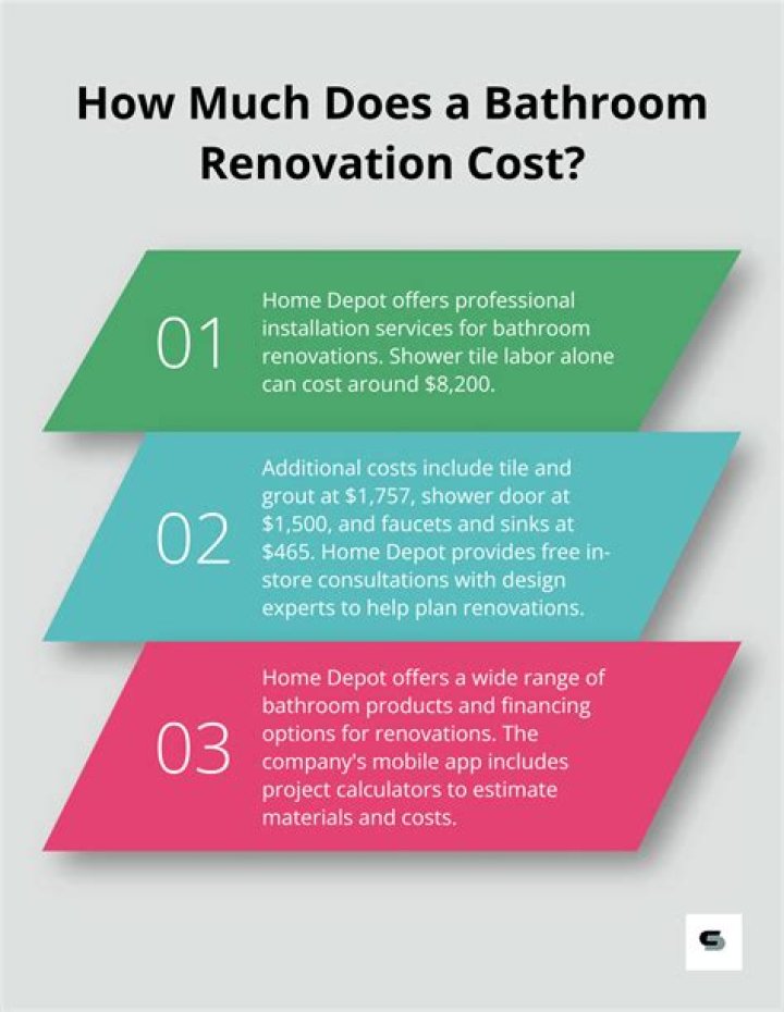During a bathroom remodel, you have the opportunity to update your vanity, faucets, flooring, walls, tub, shower, lighting, storage, and paint. The Home Depot has a team of bathroom installation professionals ready to assist you with your bathroom remodel.