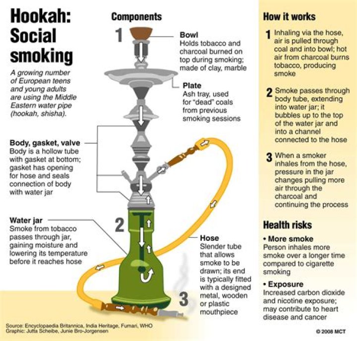 The tobacco is no less toxic in a hookah pipe than in a cigarette, and the water in the hookah does not filter out the toxic ingredients in the tobacco smoke. In fact, hookah smokers are exposed to more carbon monoxide and smoke than are cigarette smokers.Is Shisha worse than smoking?