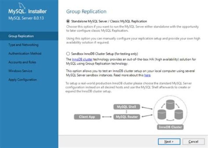 MySQL Router is part of InnoDB cluster, and is lightweight middleware that provides transparent routing between your application and back-end MySQL Servers. MySQL Router 8.0 is highly recommended for use with MySQL Server 8.0 and 5.7. For notes detailing the changes in each release, see the MySQL Router Release Notes.What is MySQL group replication?