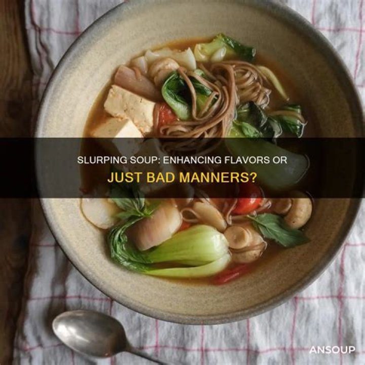Subsequently, question is, is it proper etiquette to slurp soup? Generally, people slurp because the soup is hot. Instead of slurping to cool the soup, try gently and quietly blowing on the soup in the spoon before taking it into your mouth. Once cooled, the spoonful can then be put into your mouth without slurping. At a very formal meal, refrain from blowing or slurping.