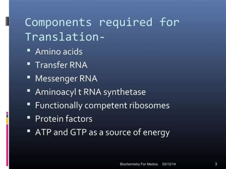 One may also ask, what molecules are required for translation? Translation is catalyzed by a large enzyme called a ribosome, which contains proteins and ribosomal RNA (rRNA). Translation also involves specific RNA molecules called transfer RNA (t-RNA) which can bind to three basepair codons on a messenger RNA (mRNA) and also carry the appropriate amino acid encoded by the codon.