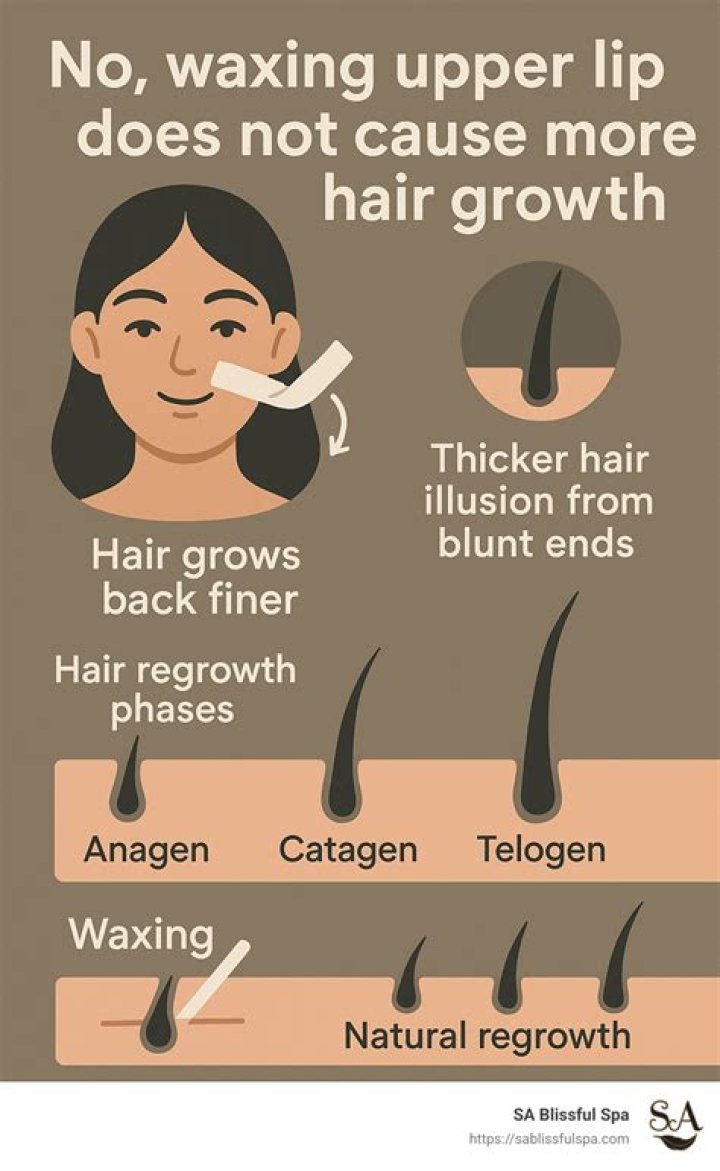 So long as her upper lip hair is darker or coarser than the fluffy hair on her cheeks, waxing will not affect the growth or thickness of the hair.Does waxing upper lip cause darkness?