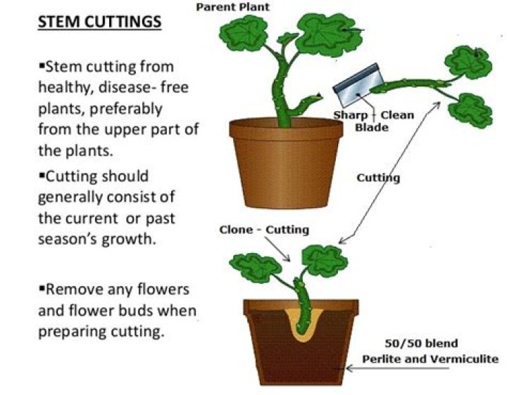 Cuttings can be made from any part of the plant. A stem cutting includes a piece of stem plus any attached leaves or buds. Thus, the stem cutting only needs to form new roots to be a complete, independent plant. A leaf cutting uses just the leaf, so both new roots and new stems must be formed to create a new plant..