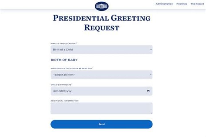 - Contact Your Senator or Representative. Get a hold of your Senator or House Representative and request a White House greeting.