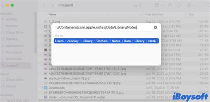 You'll find it in your home Library at~/Library/Containers/com.apple.Notes/Data/Library/Notes/.To go there, enter the path string in the Finder's Goto Folder window; this works whether or not the Library folder isinvisible on your Mac. Notes data are stored in thefiles in this Library subfolder.Can you find deleted notes on Mac?