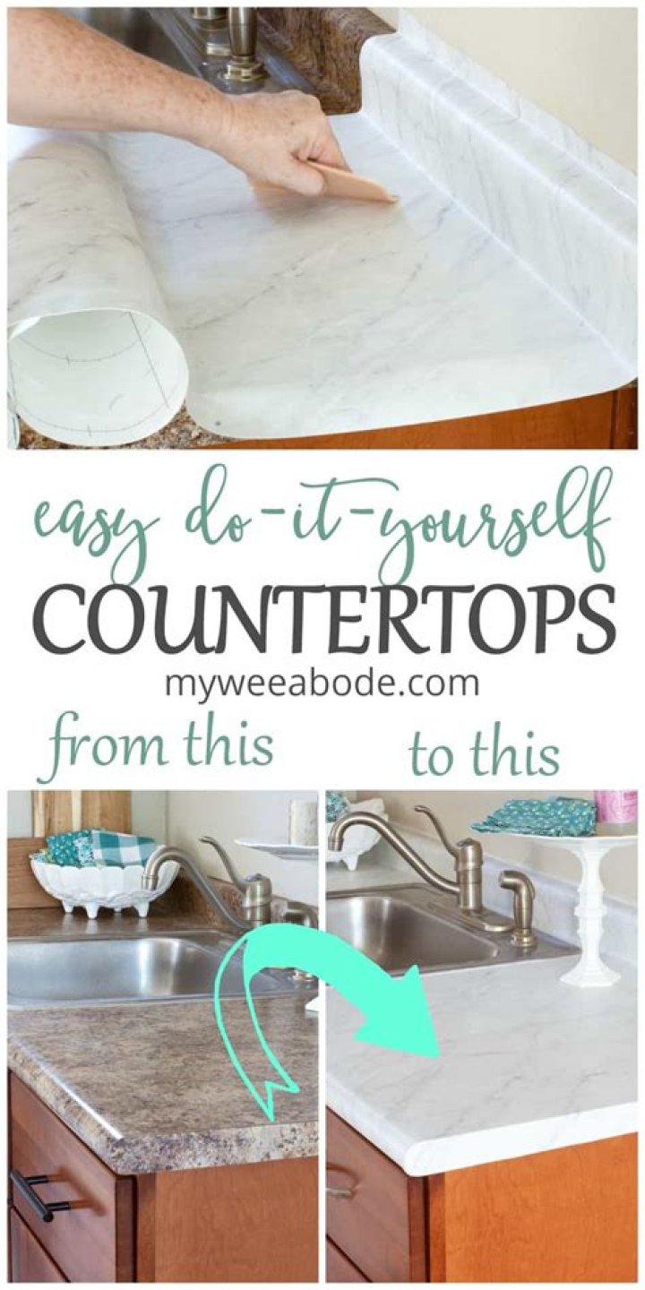 Secondly, how can I redo my kitchen countertops cheap? Here are a few less expensive ways to update old counters.