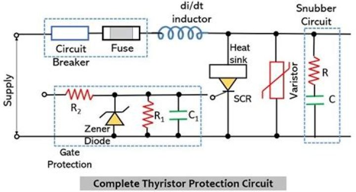 The Thyristor or SCR, Silicon ControlledRectifier can be used to provide overvoltageprotection in a power supply circuit. By detecting the highvoltage, the circuit can fire the thyristor toplace a short circuit or crowbar across the voltage railto ensure it does not rise to high involtage..