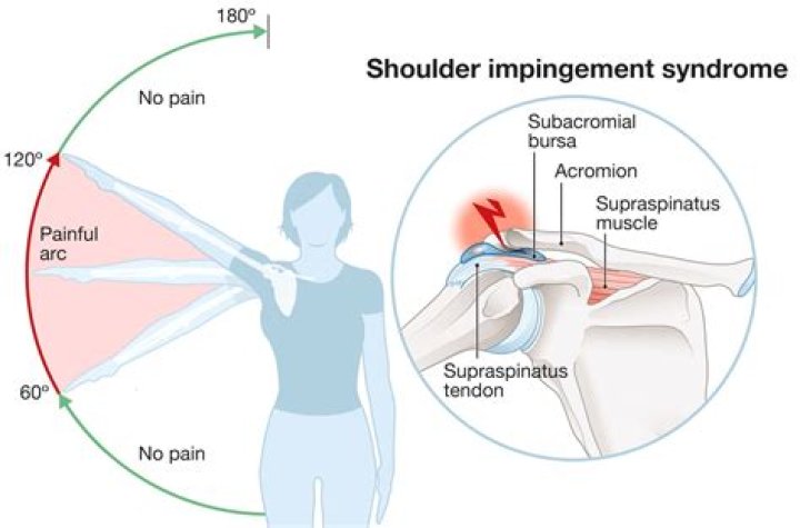 - An arc of shoulder pain approximately when your arm is at shoulder height and/or when your arm is overhead.