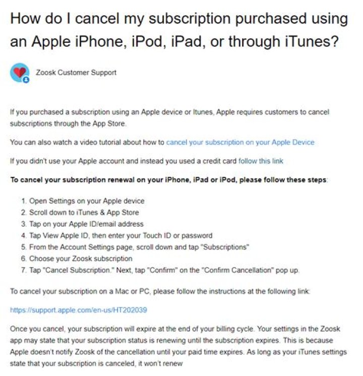 In this regard, how do I unsubscribe from Zoosk on my iPHONE?