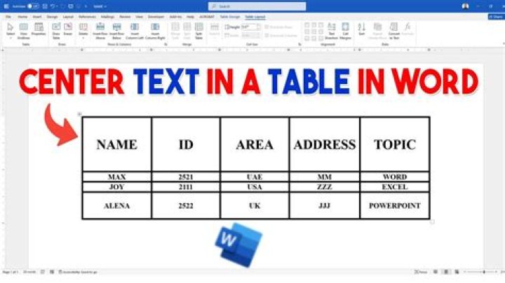Select the cells, columns, or rows, with text that you want to align (or select your entire table). Go to the (Table Tools) Layout tab. Click an Align button (you may have to click the Alignment button first, depending on the size of your screen).