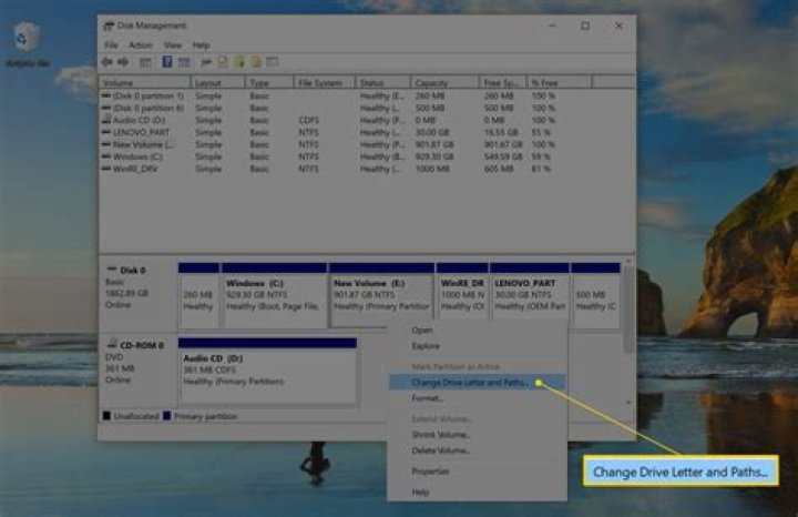 - In Disk Management, right-click the drive for which you want to change or add a drive letter, and then select Change Drive Letter and Paths.