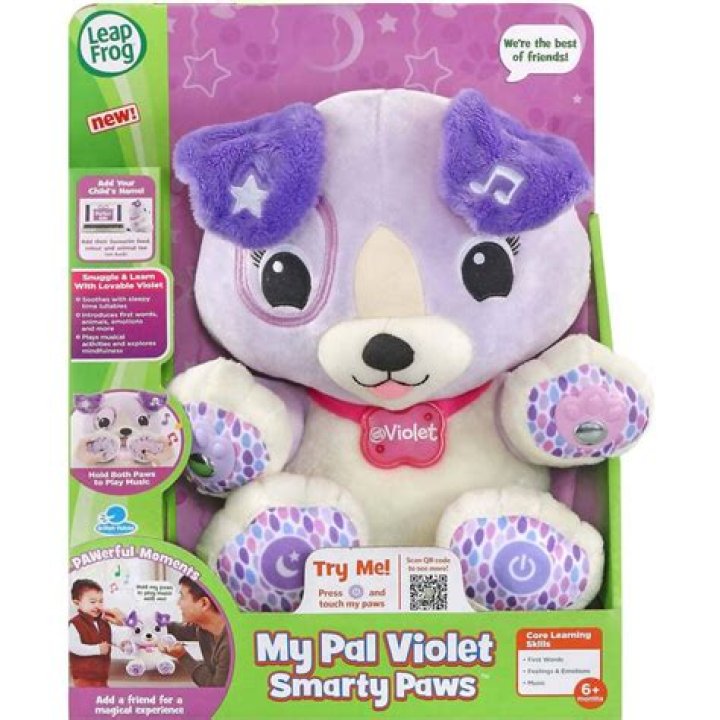 One may also ask, what Does My Pal Violet do? My Pal Violet is the lovable puppy who can learn your child's name and favorite things, for personalized daytime learning and nighttime comfort. Designed for little ones ages 6 months to 36 months, My Pal Violet teaches first words, feelings and emotions, counting and colors.