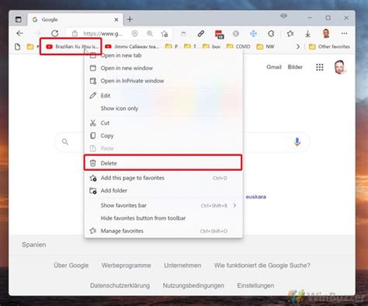- Right click on favorite folder or website that you wantto remove and click "Remove".