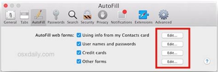 - To change or delete AutoFill information, click Edit next to the information you want to change or delete.