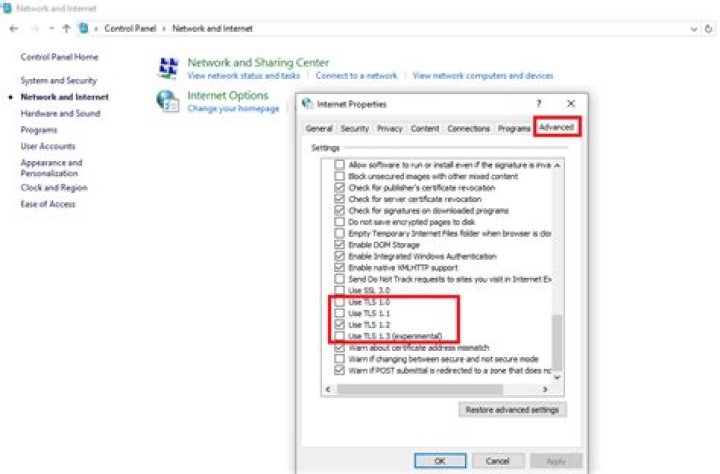 Your TLS security settings aren't set to the defaults, which could also be causing this error. Solution: Open Internet options window, go to Advanced Tab, scroll down and select the security options Use SSL 3.0, Use TLS 1.0, Use TLS 1.1 and Use TLS 1.2.Does Chrome use SSL or TLS?