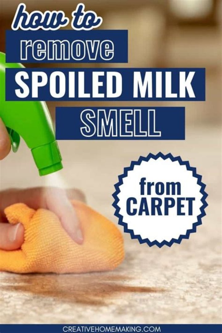 Step 1: Create a vinegar cleaning solution consisting of one part white vinegar to one part water. Vinegar neutralizes the ammonia smell of urine without fading carpet fibers, making it a good choice for cleaning and protecting your carpet. Step 2: Slowly pour the solution on the stained area of the carpet.How long will spilled milk smell?