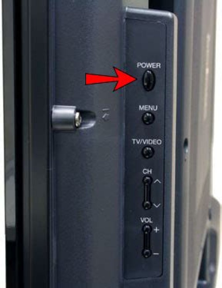 Locate the power button on the TV set or the remote control. The power button on almost all models of Samsung televisions is on the front of the set, in the center, just below the screen. The button is usually in the top-right or top-left corner of the remote control.Is there a reset button on a Sharp TV?