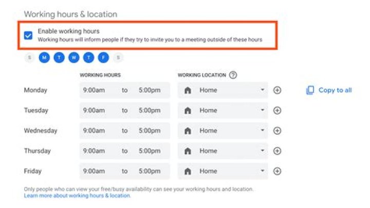 If someone invites you to an event outside of these hours, they'll see a notification informing them that it's outside of your working hours.