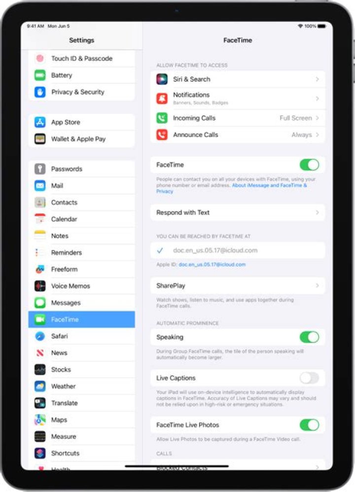 - Go to Settings > FaceTime, then turn on FaceTime.