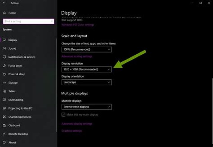 Put the cursor in the bottom right corner of the Windowsscreen and move it upward. Select "Settings," then click"Change PC Settings." Click "PC and Devices" and then click"Display." Drag the resolution slider that appears on thescreen to the resolution recommended for yourTV.Why is my screen zoomed in Windows 10?