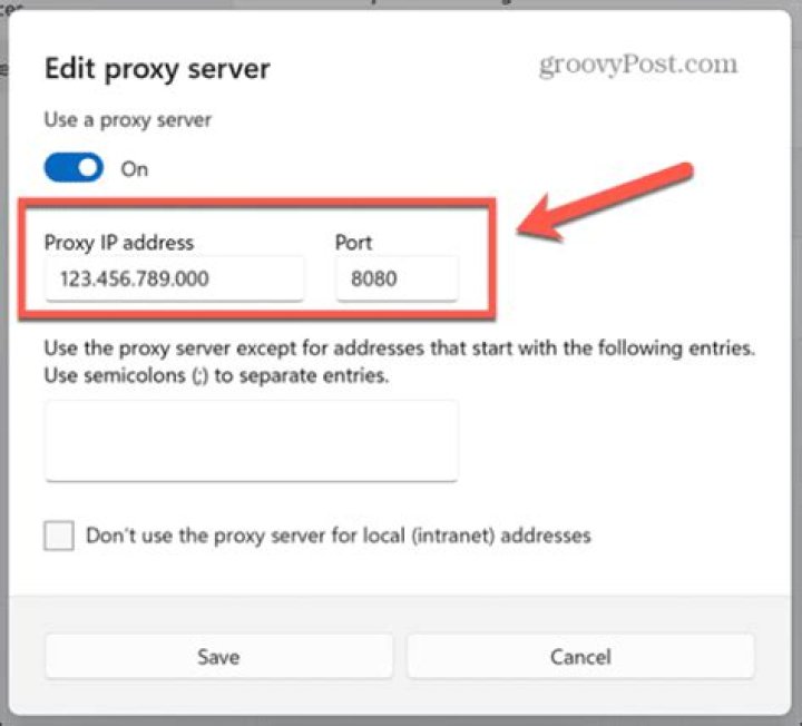 - In the Manual Proxy Setup section, set the Use a Proxy Serverswitch to On.