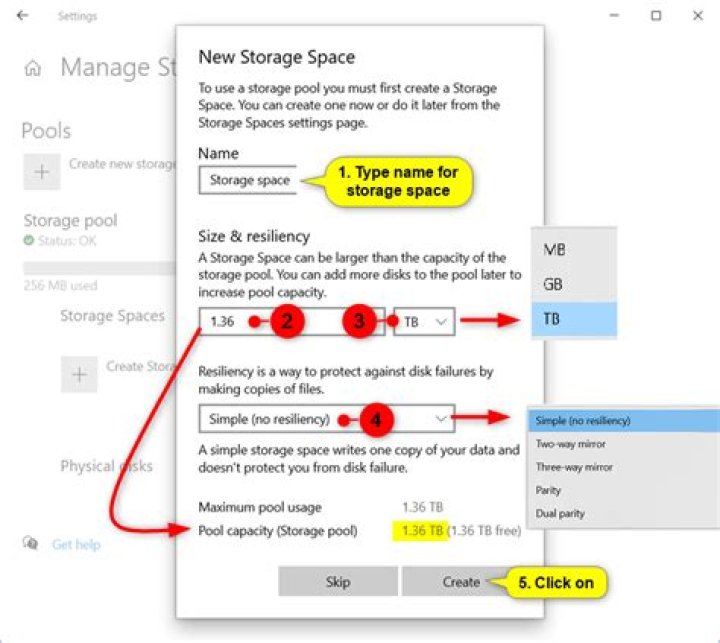 - Choose “create a new pool and storage space.”
