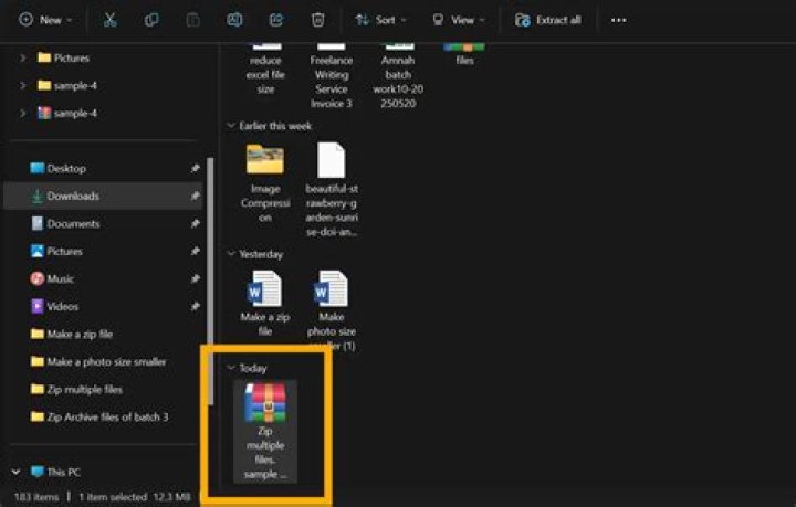 - Right-click on the file or folder (or group of files or folders), then point to Send to and select Compressed (zipped) folder.