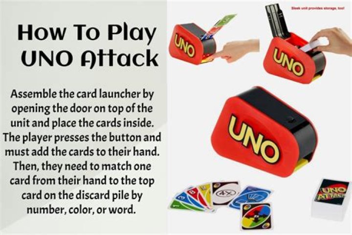 Uno Attack is a twist on the original Unogame that requires a special Uno deck and a special cardlauncher. Unlike the original Uno game, in which the goalwas to play all your cards before the other players, Uno Attackrules state that to win the game, you must be the first playerto reach 500 points.