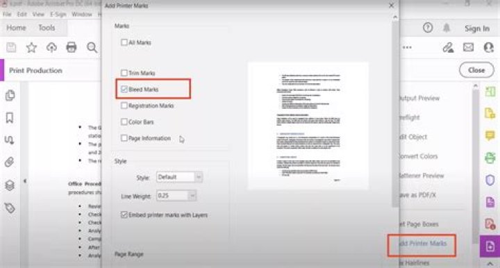Click File > Print, click the menu to select a printer, and then click Advanced Output Settings. On the Marks and Bleeds tab, under Printer's marks, select the Crop marks check box. Under Bleeds, select both Allow bleeds and Bleed marks.What is a bleed in Photoshop?