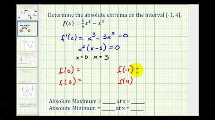 Extrema (Local and Absolute) An extremum (or extreme value) of a function is a point at which a maximum or minimum value of the function is obtained in some interval. An absolute extremum (or global extremum) of a function in a given interval is the point at which a maximum or minimum value of the function is obtained.What is maximum and minimum of a function?