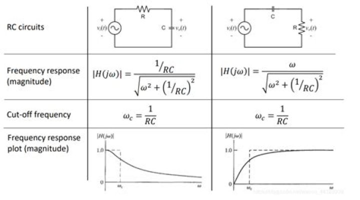 - Low pass filters filter out signal with frequencies above the cutoff frequency (1/2πRC).