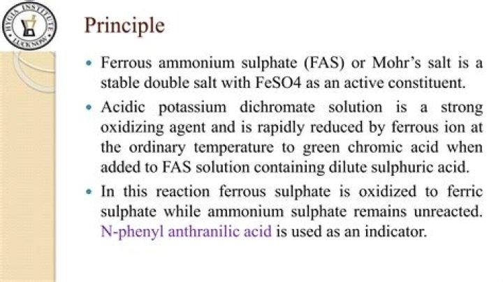 Ferrous Ammonium Sulphate Solution Preparation- Dissolve 40 g of ferrous ammonium sulfate in a previously cooled mixture of 40 ml of sulphuric acid and 200 ml of water.