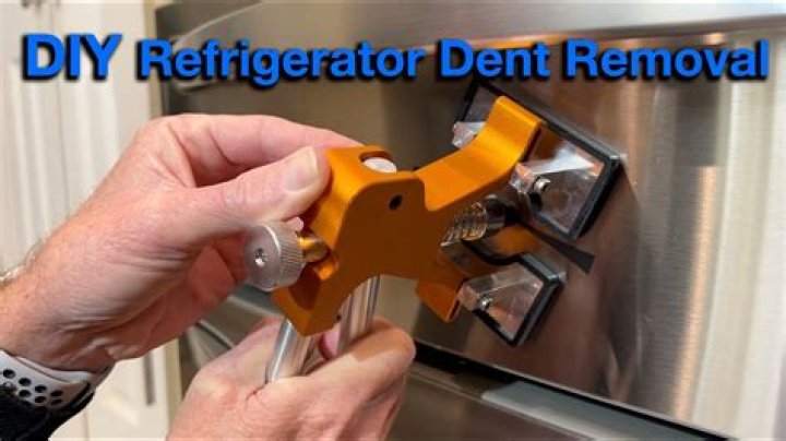 Beside above, is there a way to get a dent out of a stainless steel refrigerator? Three easy methods for removing dents from stainless steel appliances involve using dry ice, a can of air duster or a suction-cup dent puller. Find a place that carries dry ice. Try hardware stores, grocery stores and live bait shops. Place the piece of dry ice in a foam cooler to carry it home.