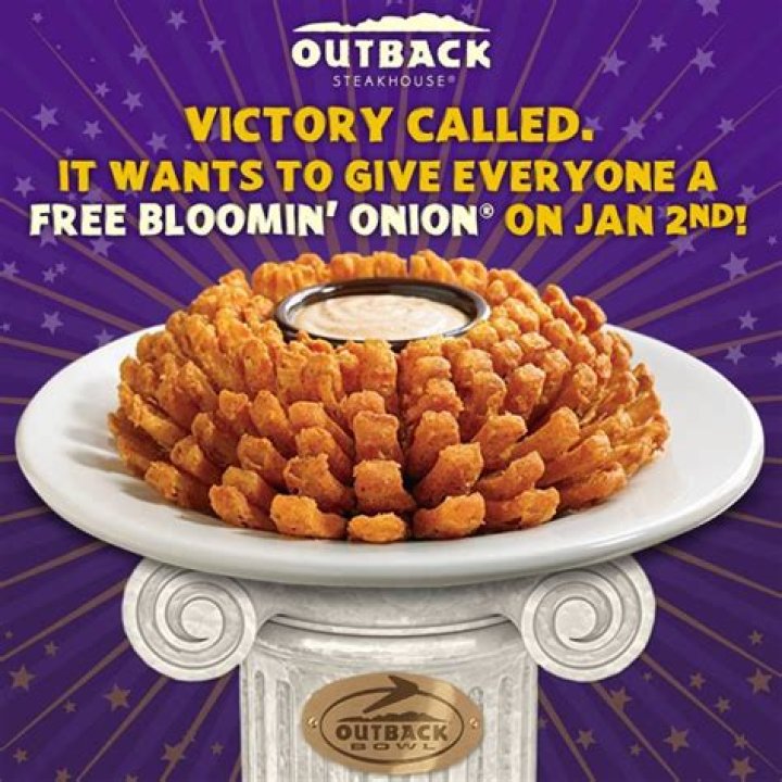 Outback Free Bloomin' Onion Today. Outback has free Bloomin' Onions today, Monday, February 3, 2020. To get your free Bloomin' Onion make any purchase and ask your server for the “Big Game Special.” Outback announced the special, celebrating the finale of the Super Bowl, in an email to subscribers.