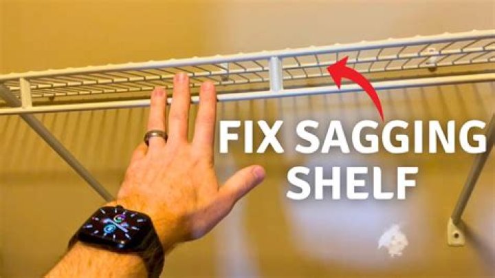 If you have a sagging shelf, you can reinforce it with metal shelving brackets. Get a metal shelving bracket that fits between the sagging shelf and the one below it. Then, take down the 2 shelves so you can install the metal shelving bracket to support the sagging shelf. Finally, put the shelves back up.