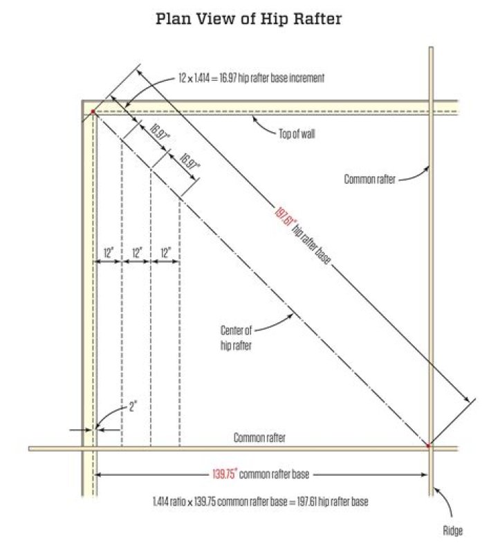 Calculate Rafter or Joist Length to Birdsmouth Location- Divide the width of building by 2 e.g. 72 inches wide divided by 2 = 36 inches.