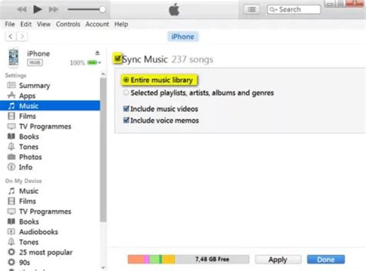 - Check the box Sync Audiobooks onto your device to activate audiobooks syncing.