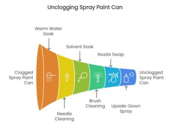 Remove the nozzle from the can of aerosol lubricant and replace it with the clogged spray paint nozzle. Press down on the nozzle to force the aerosol lubricant through it. Repeat until the clog is cleared. If the nozzle is still clogged, remove it from the aerosol lubricant.