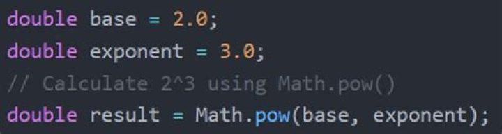 Type the following anywhere in the document to find an exponent: double result = Math. pow(number, exponent); Replace "number" with the base value and "exponent" with the exponent it is to be raised to.